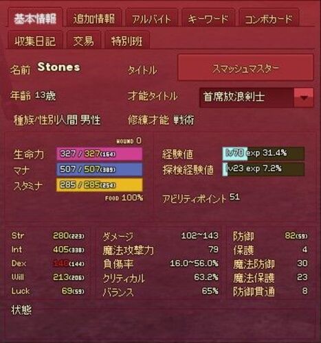 やっとテンプレできたので。 ---Stones スキル表--- ▼生産タブ ▼補助 Active 休憩 F キャンプファイア 8 応急治療 D ▼生産 Passive メイキングマスタリ 6 薬草学 8 羊毛刈り F 採鉱 練 卵採集 D キノコ採集 - 乳搾り - 収穫 E 鍬さばき E ワイン製造 練 交易…